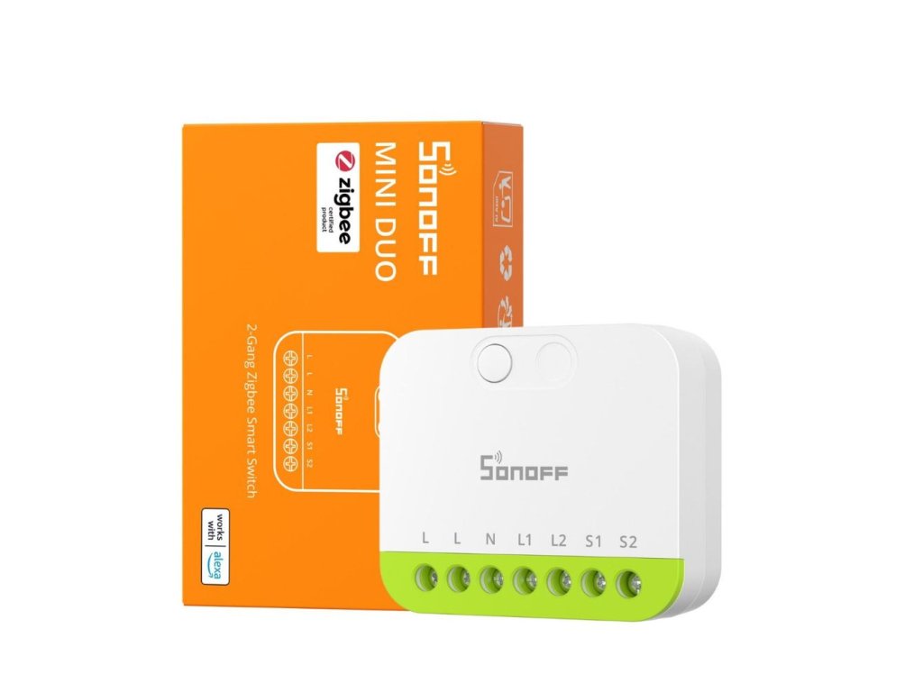 SONOFF MINI-ZB2GS (MINI DUO) je ultrakompaktný dvojkanálový inteligentný vypínač Zigbee 3.0, ktorý vylepšuje váš existujúci nástenný vypínač o inteligentné funkcie – bez zmeny jeho vzhľadu. Je navrhnutý tak, aby sa zmestil do štandardných elektrických krabíc, dokáže ovládať dva nezávislé svetelné obvody a podporuje až 16 A (maximálne 10 A na kanál, odporová záťaž). Obsahuje funkcie časovača, scény a skupinové ovládanie.