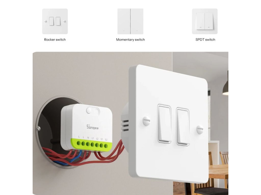 SONOFF MINI-ZB2GS (MINI DUO) je ultrakompaktný, dvojkanálový inteligentný vypínač Zigbee 3.0, ktorý vylepšuje váš existujúci nástenný vypínač o inteligentné funkcie – bez zmeny jeho vzhľadu.